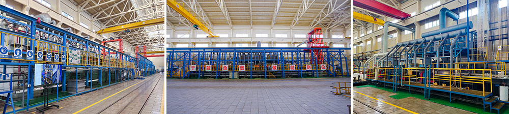 表面技術(shù)中心占地5.2公頃,規(guī)劃面積25000m2,目前已經(jīng)建成車間總面積10000m2。電鍍產(chǎn)線以國內(nèi)領(lǐng)先標準設(shè)計,設(shè)備選用先進的電鍍設(shè)備。其中電鍍產(chǎn)線一期工程完成了鍍鉻A、B、C三條生產(chǎn)線和廢氣、污水處理等環(huán)保配套設(shè)施的建設(shè)和驗收。鍍件的最大直徑可達到590mm,最大長度可達7500mm。它可實現(xiàn)電鍍生產(chǎn)自動化,污染物處理自動化,排放監(jiān)控自動化功能。是業(yè)內(nèi)規(guī)模較大、技術(shù)最先進的表面電鍍生產(chǎn)線。